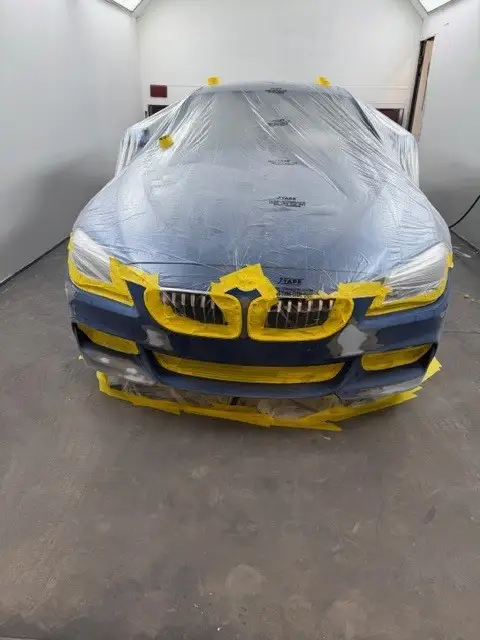 The entire passenger side, including the repaired bumpers, received a professional respray. Centre Court Car Bodyshop's paint technicians matched the BMW's original colour with precision, using high-quality automotive paint systems that replicate the factory finish.